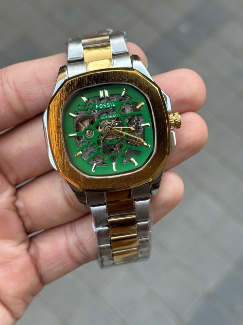 Fossi L Skeleton Square Automatic Gold Two Tone Green Dial